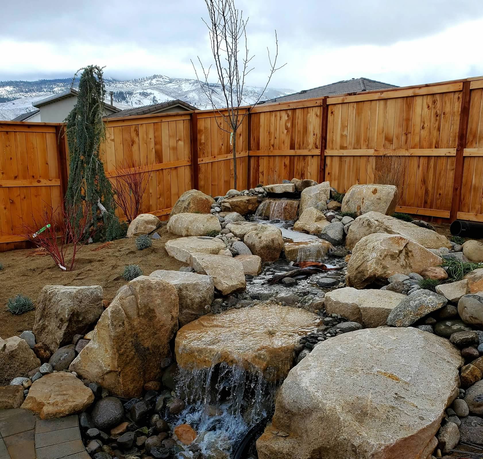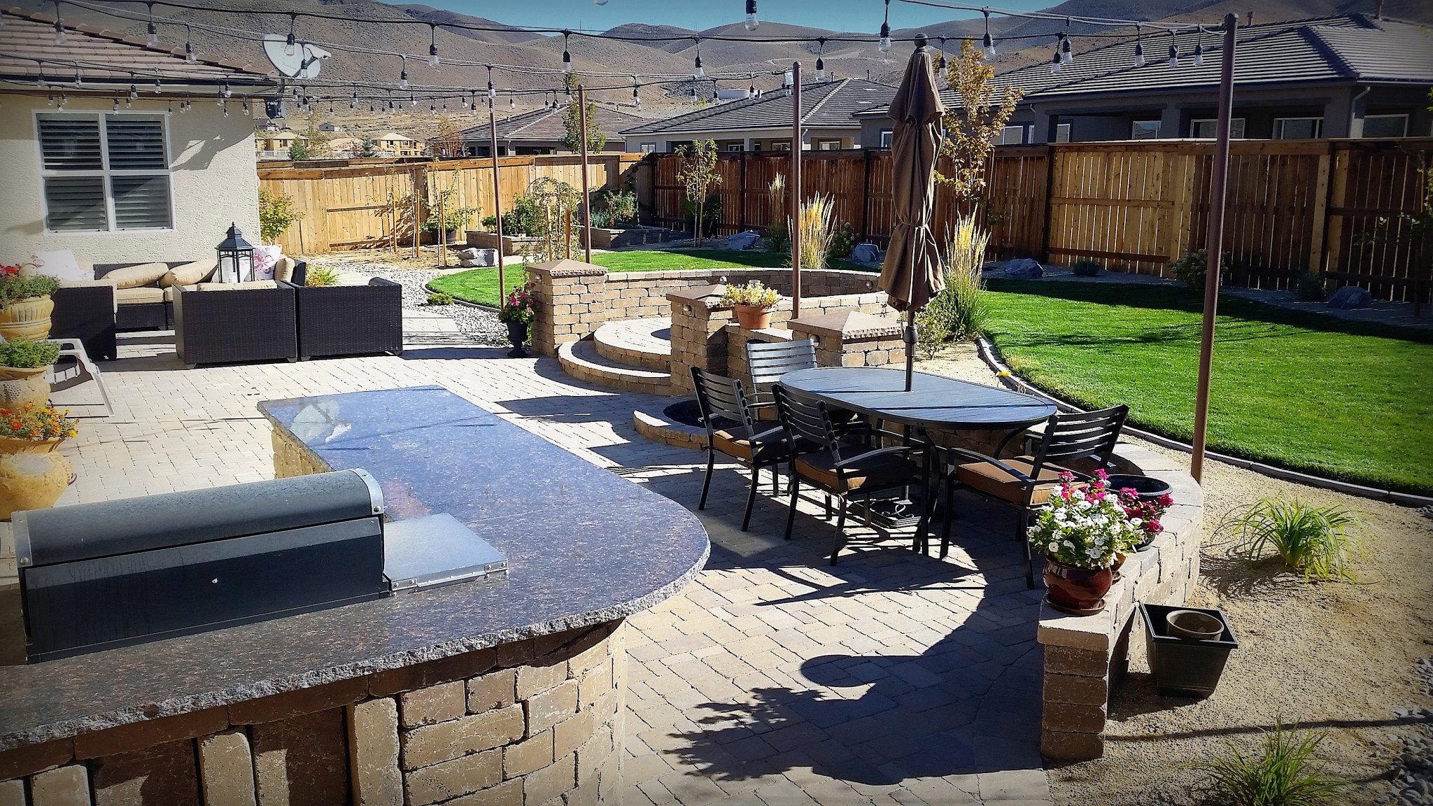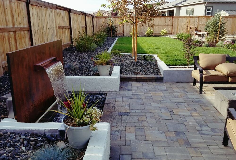 “Santiago Landscape was one of the few landscape companies in Reno that actually responded to my RFI. While communication was sometimes a little slow, it took a while to get the contract, they did eventually always get back to me. We worked with Elsa who was extremely knowledgeable, and once we got on their schedule was constantly checking in and came to the project often. They re-did our backyard for us which was in major need of TLC. They removed a failing deck, graded our yard, installed a paver patio, put in new grass and over all changed the look completely. The team who worked on our project was always on time, stayed late, and worked incredibly hard to make our yard so beautiful. It took about 2 weeks for them to finish the project. The crew also made suggestions mid-project that we took into consideration and ended up agreeing to because they made so much sense, like adding bend-a-board material between the grass area and the rocks so that the rocks didn’t keep sliding into the grass area and it kept it neat and tidy. Would definitely recommend using Santiago Landscape.”